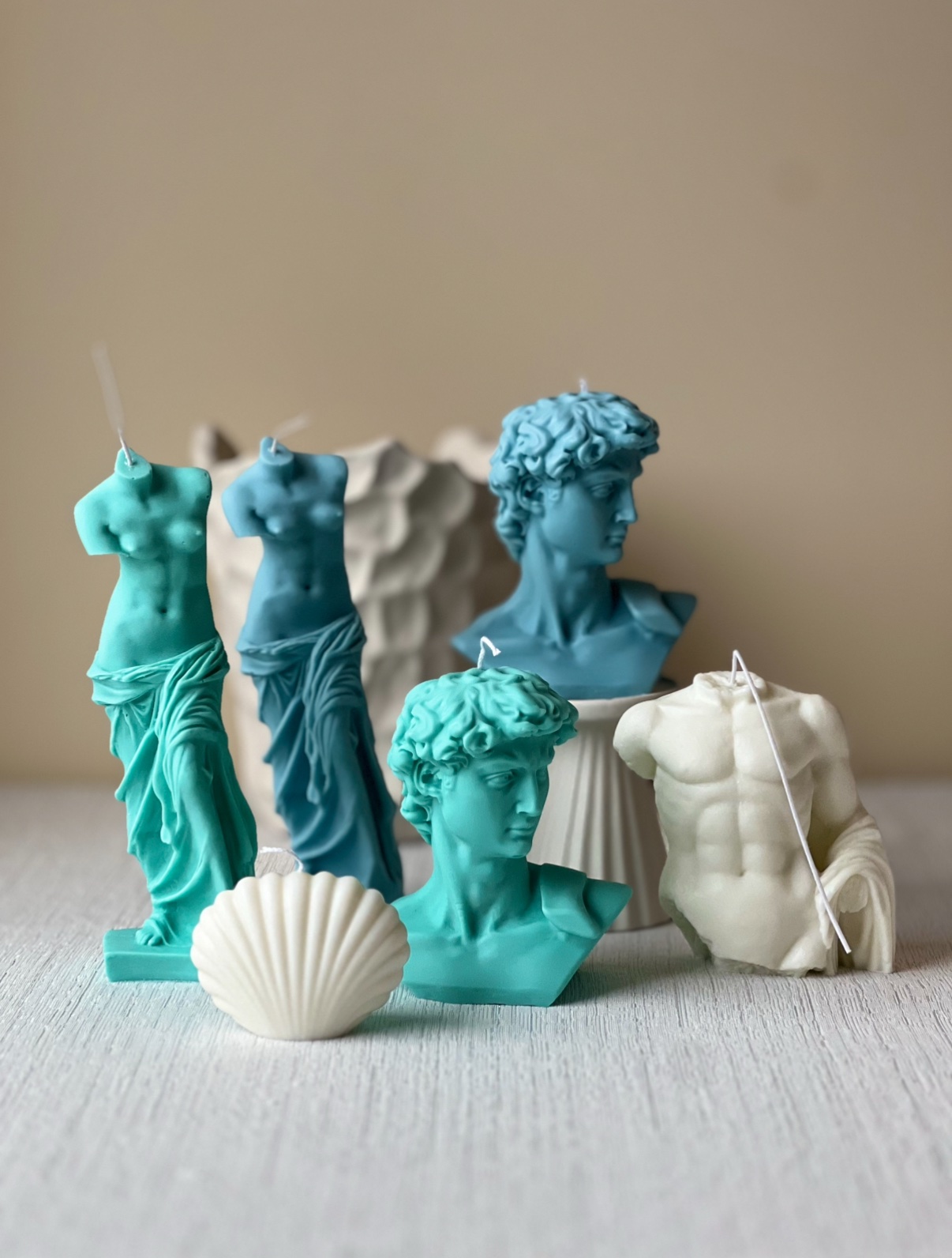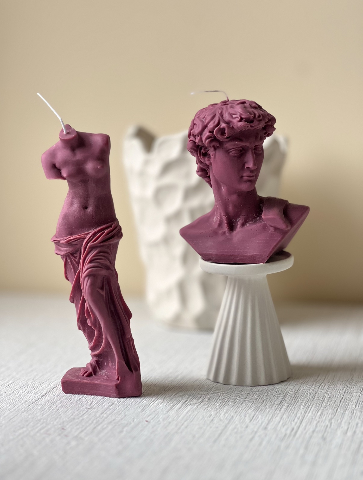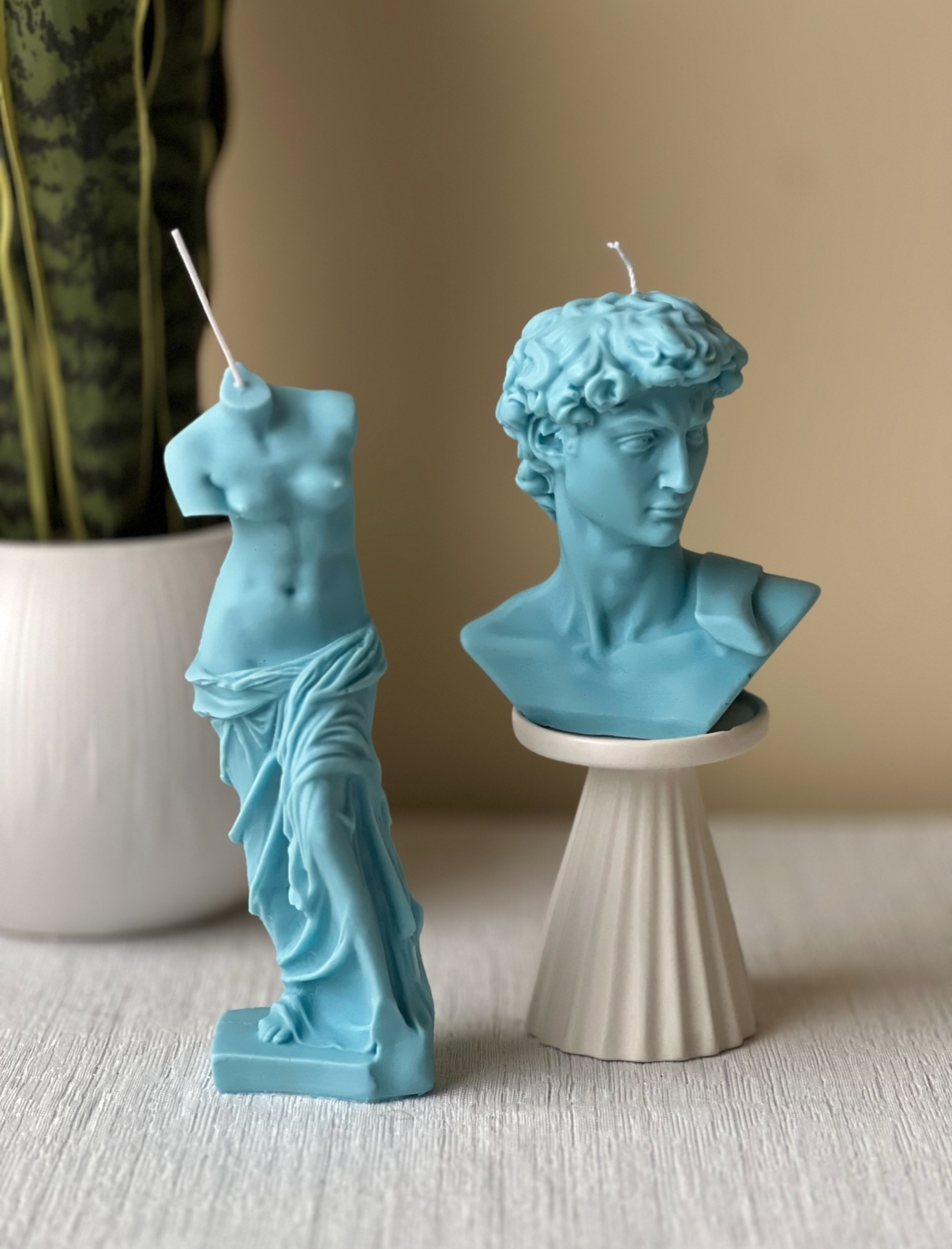 Where timeless beauty meets modern design. The Classical Duo Set features two of history’s most iconic sculptures reimagined as elegant candles — the poised Venus and the ever-watchful David. Hand-poured with intricate detail, these pieces make stunning decor for art lovers, design enthusiasts, or anyone who appreciates a bold statement.